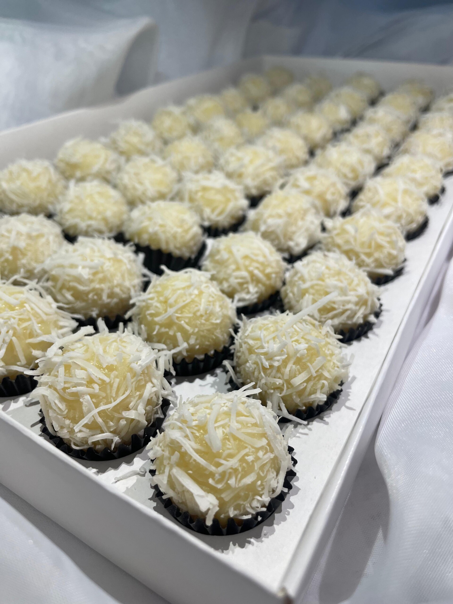 Brigadeiro de coco envolto em coco médio.